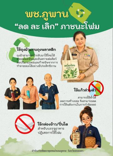 พช.ภูพาน "ลด ละ เลิก" ใช้ภาชนะโฟม ปลอดภัย สร้างสุขภาพที่ดี และสิ่งแวดล้อมยั่งยืน